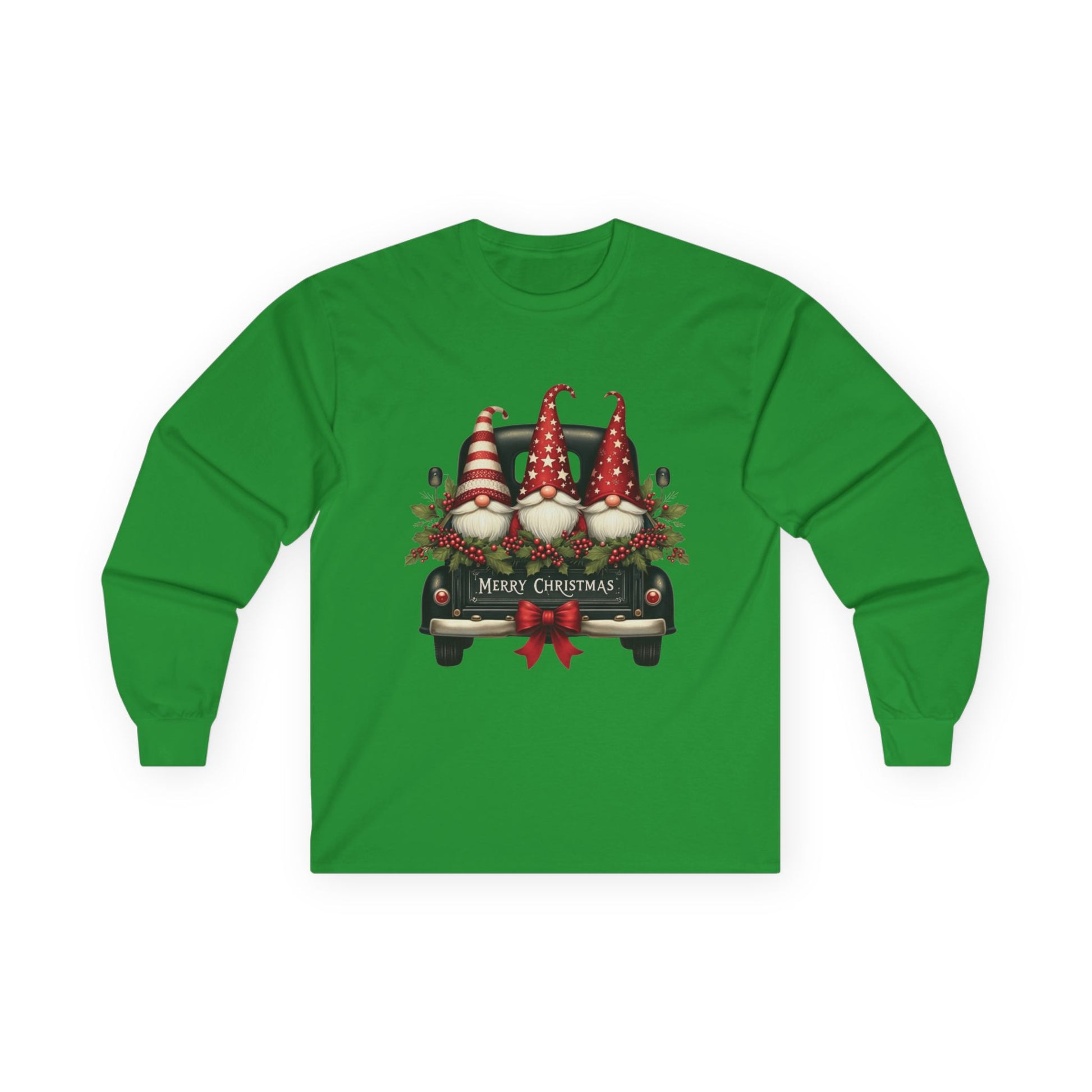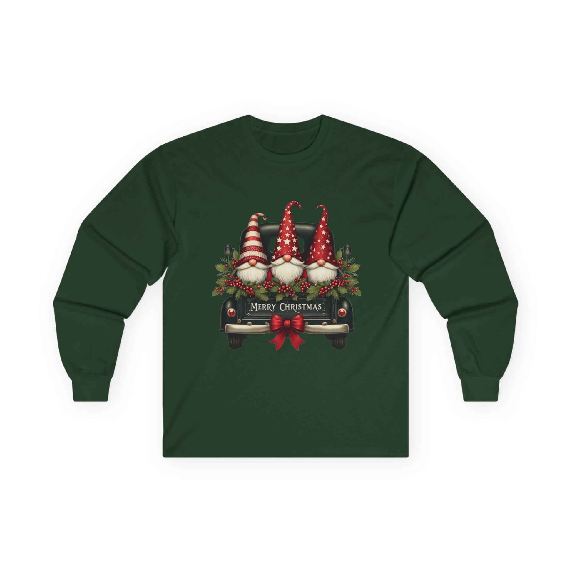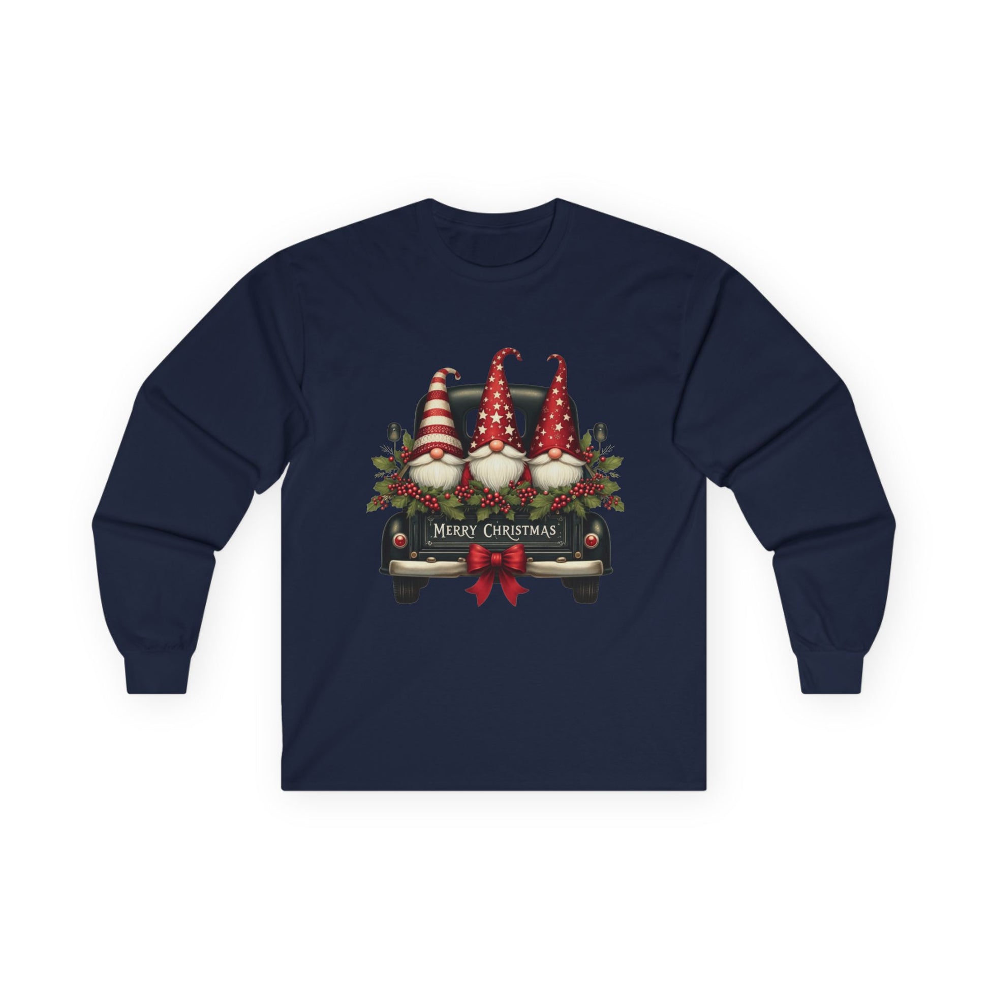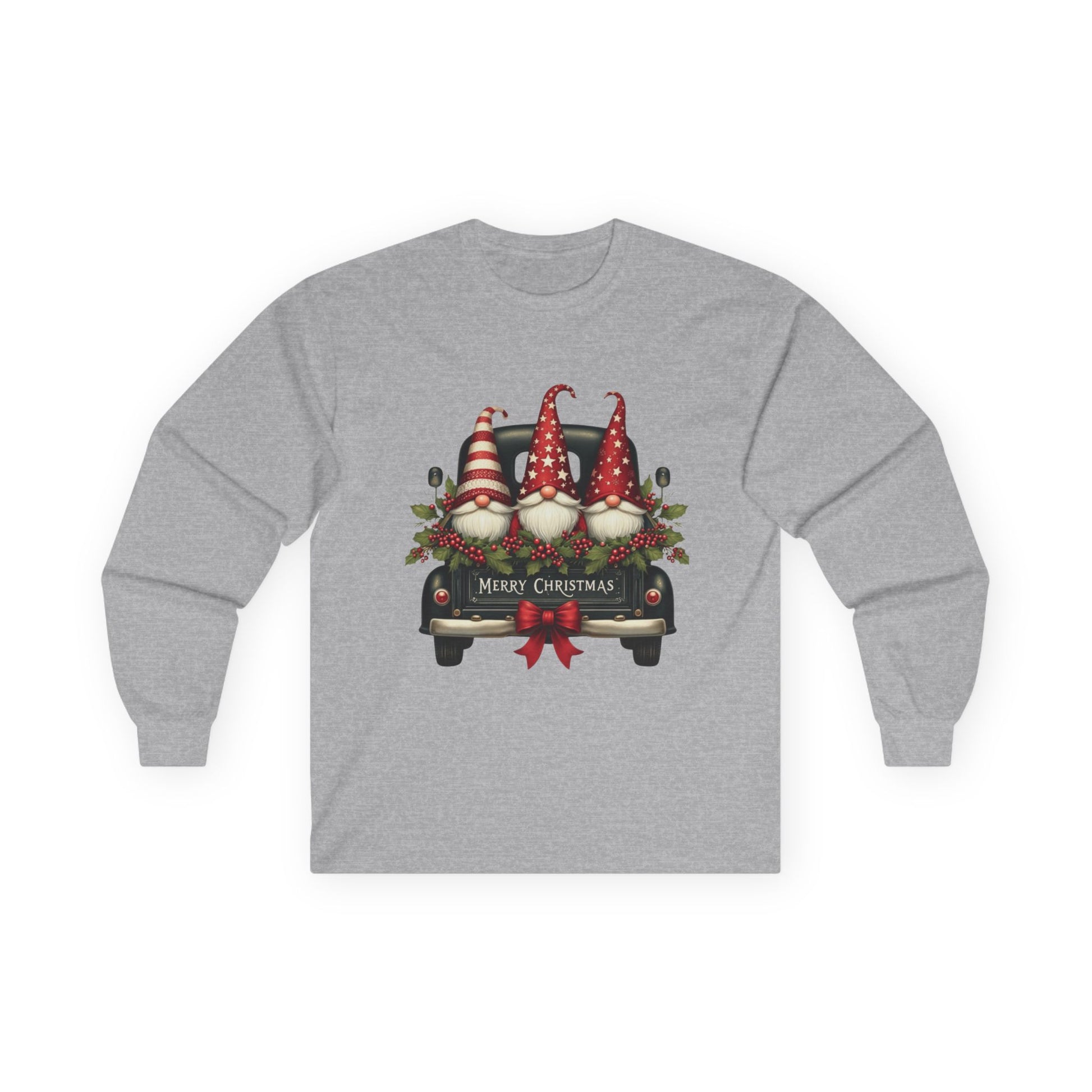 Christmas Gnomes Truck Long Sleeve Tee – "Merry Christmas" Holiday Shirt