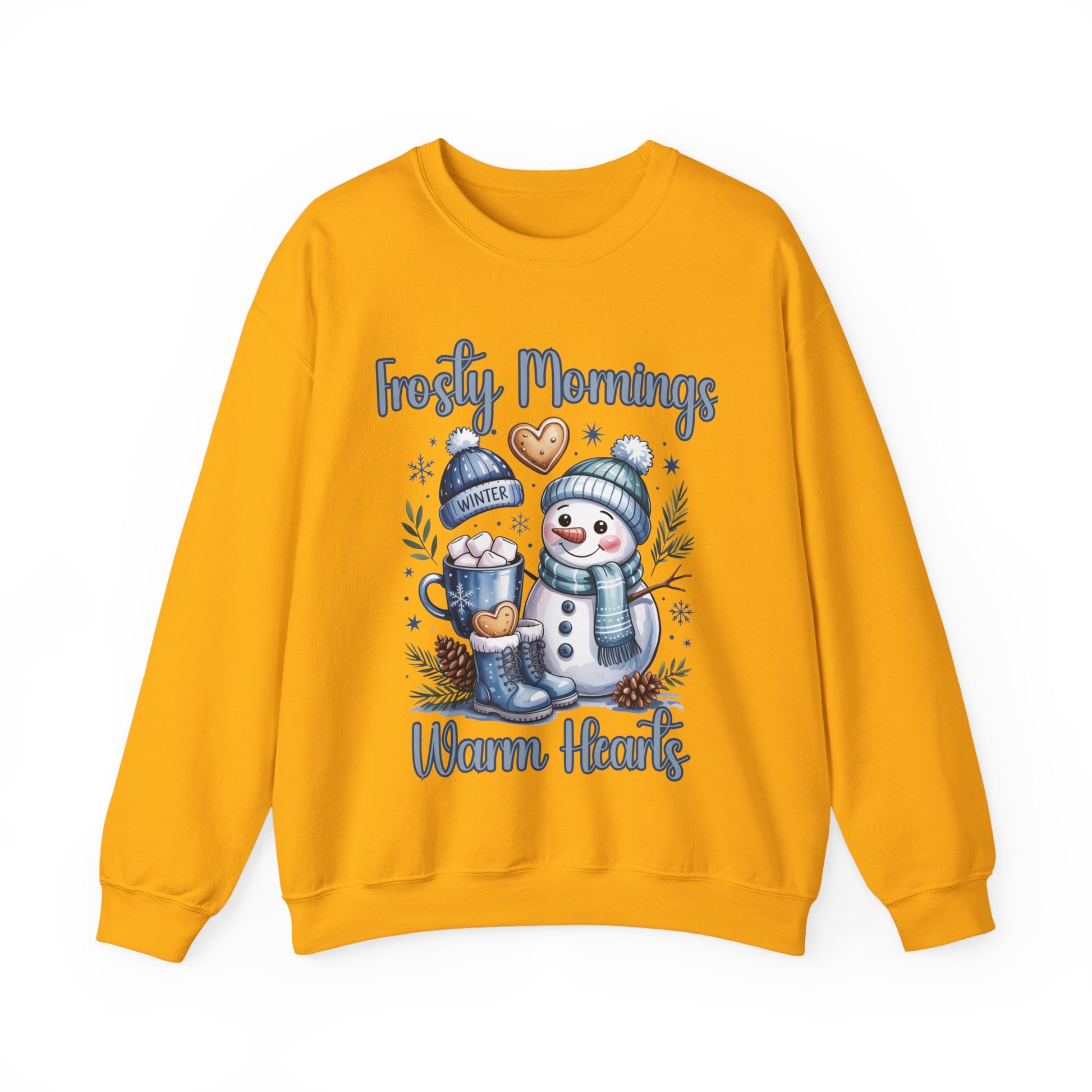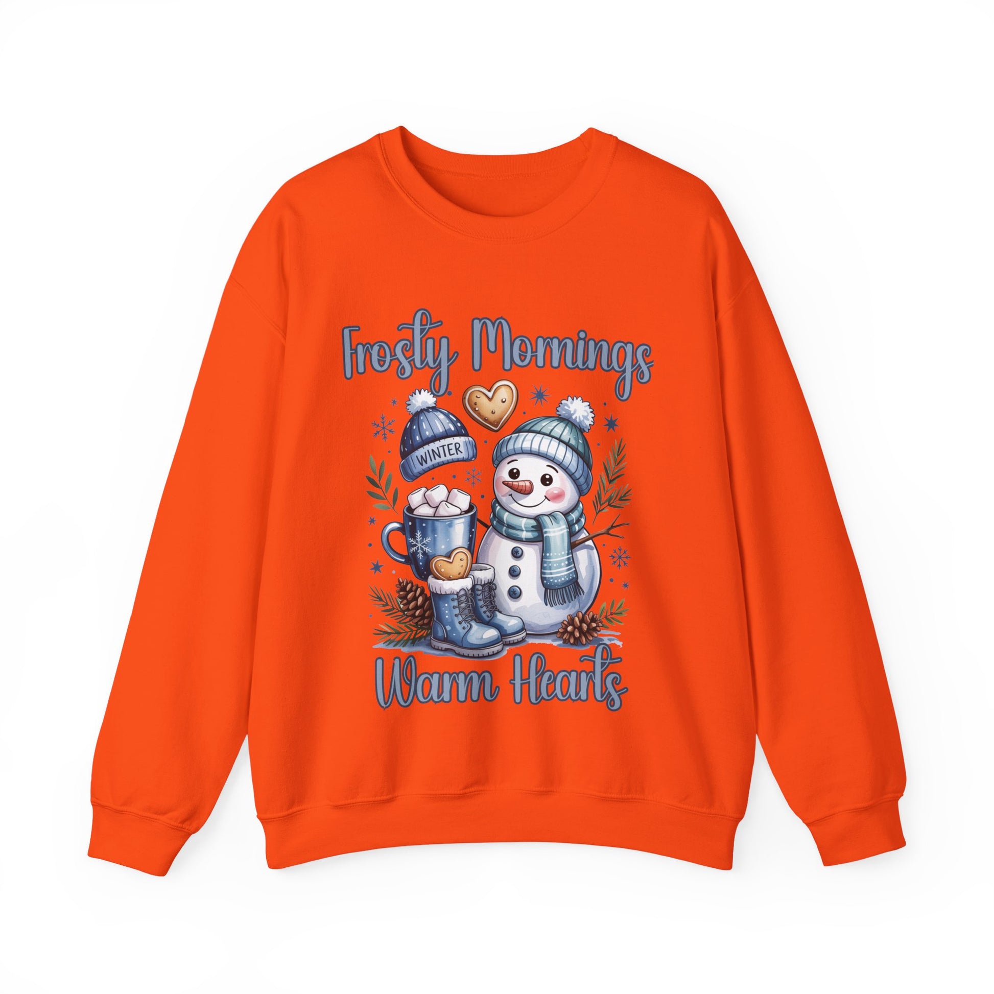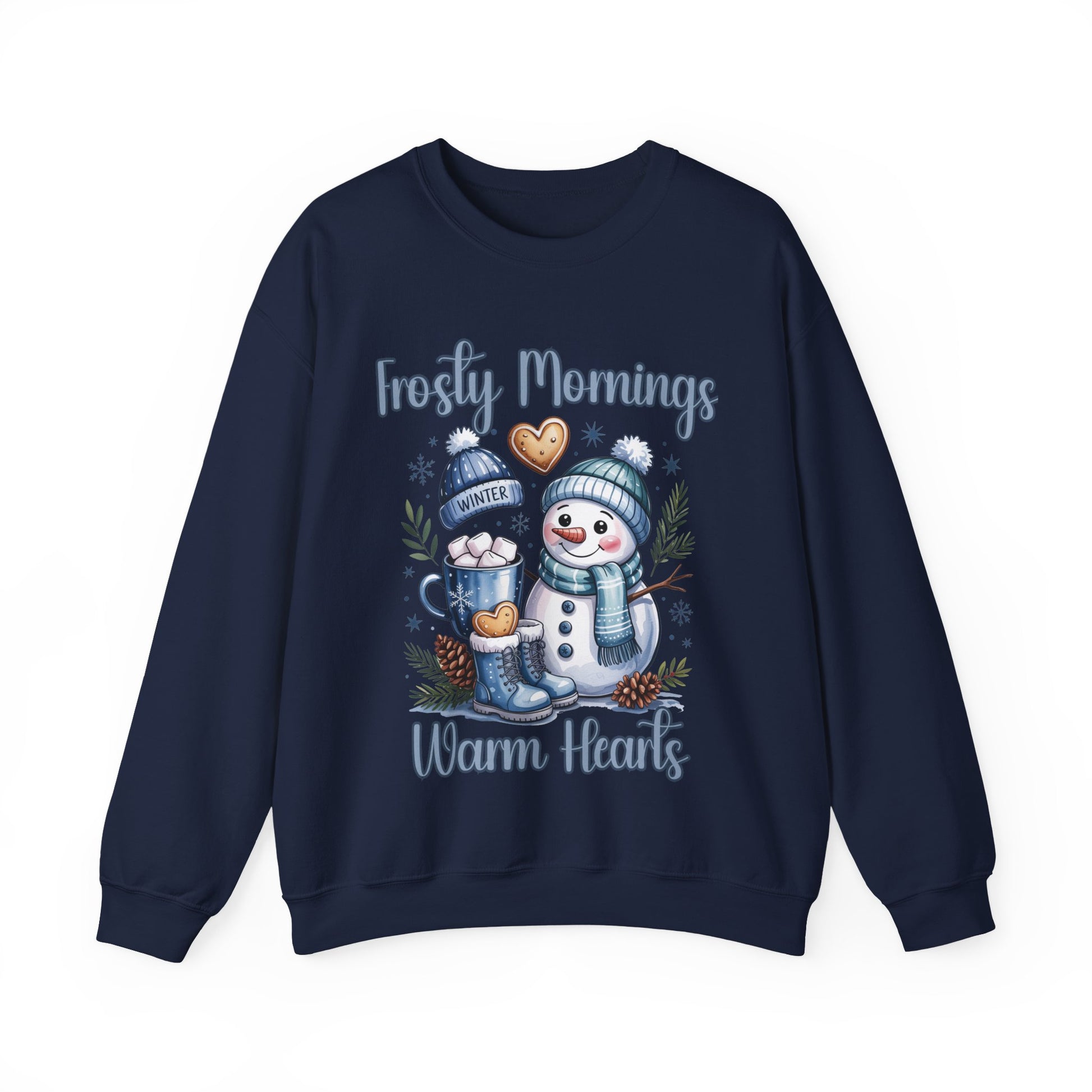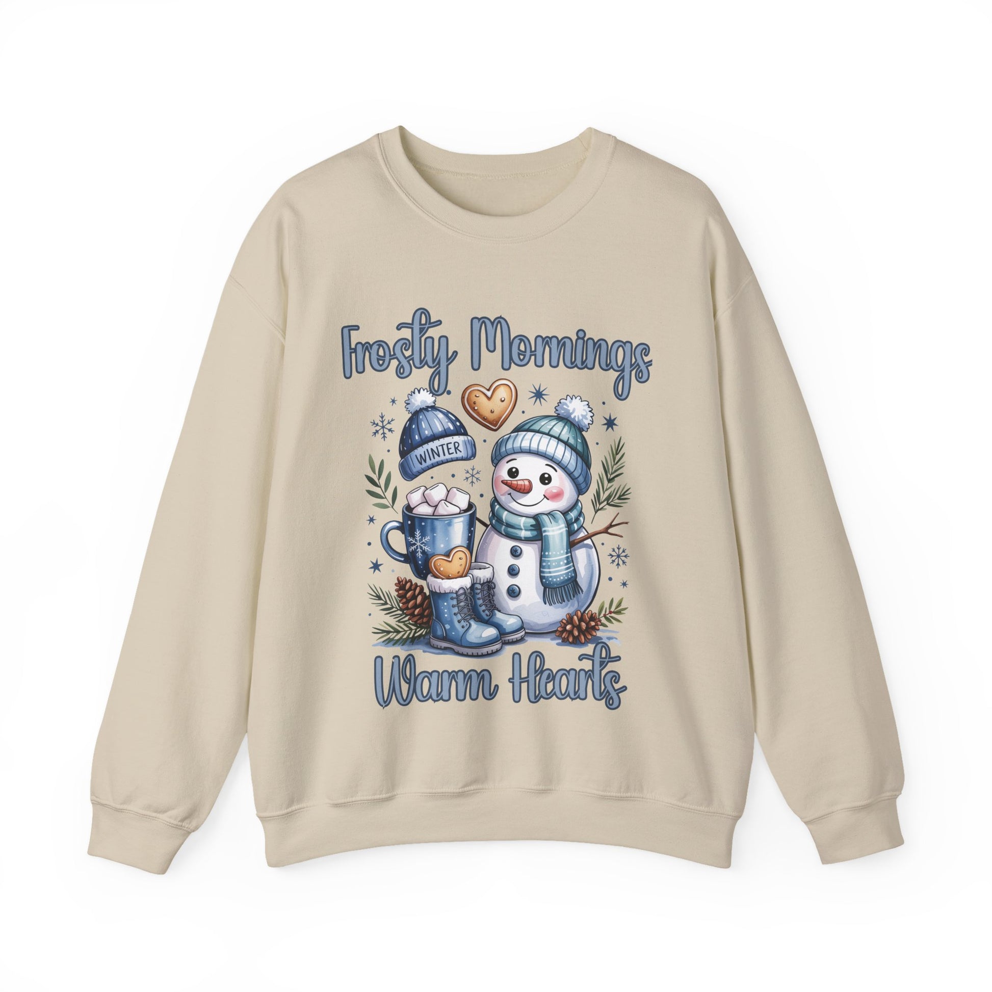 Snowman Morning Crewneck Sweatshirt — "Frosty Mornings Warm Hearts" Holiday Pullover